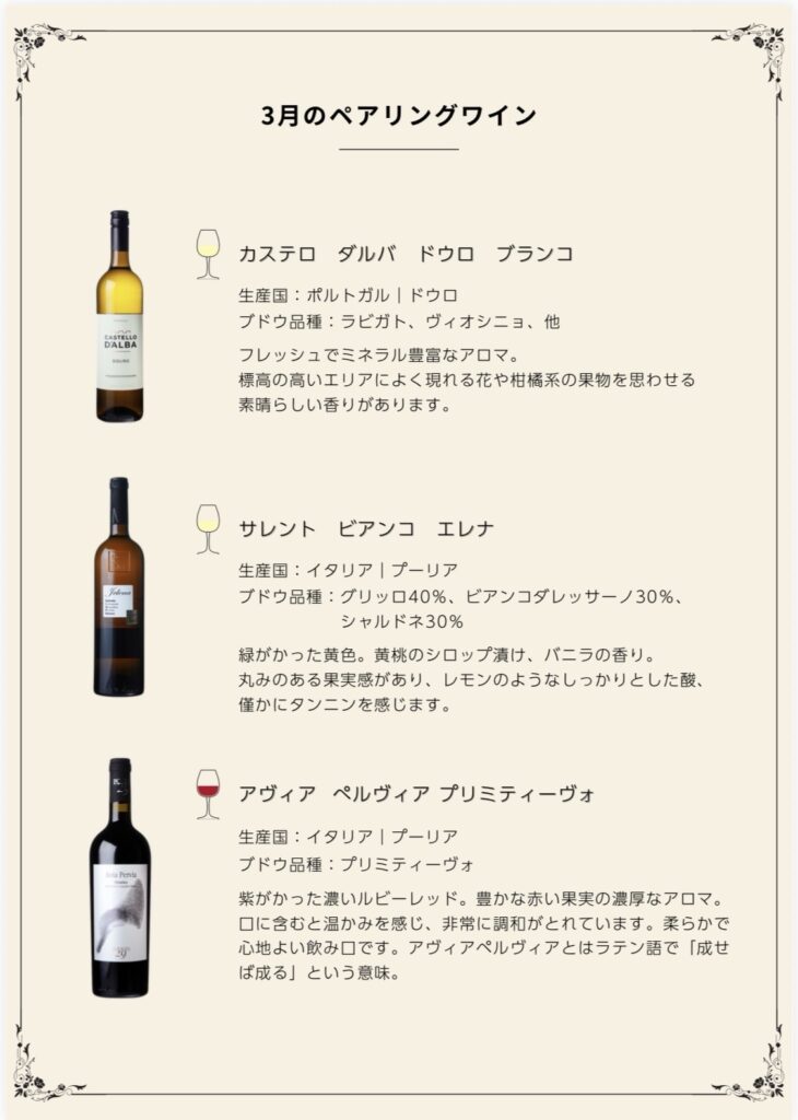 3月のペアリングワインになります