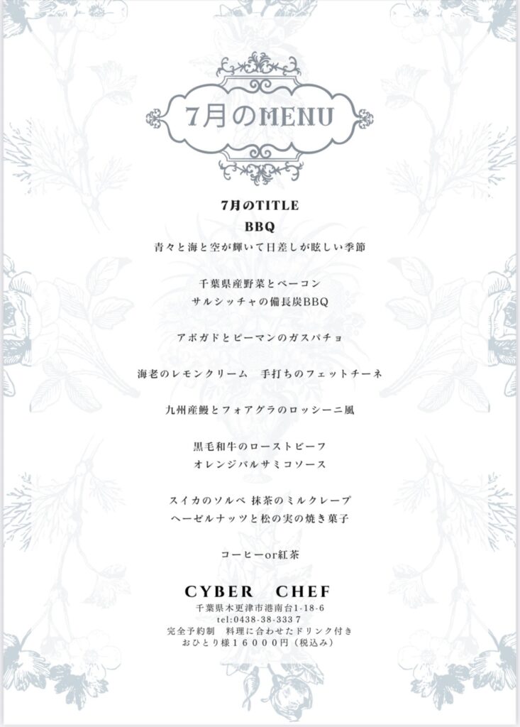 7月のメニュー