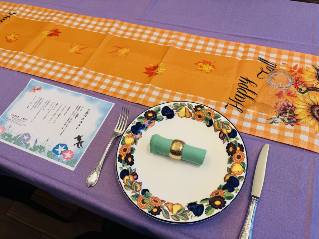 テーブルランナーは少しフライング気味の秋の気配🍂