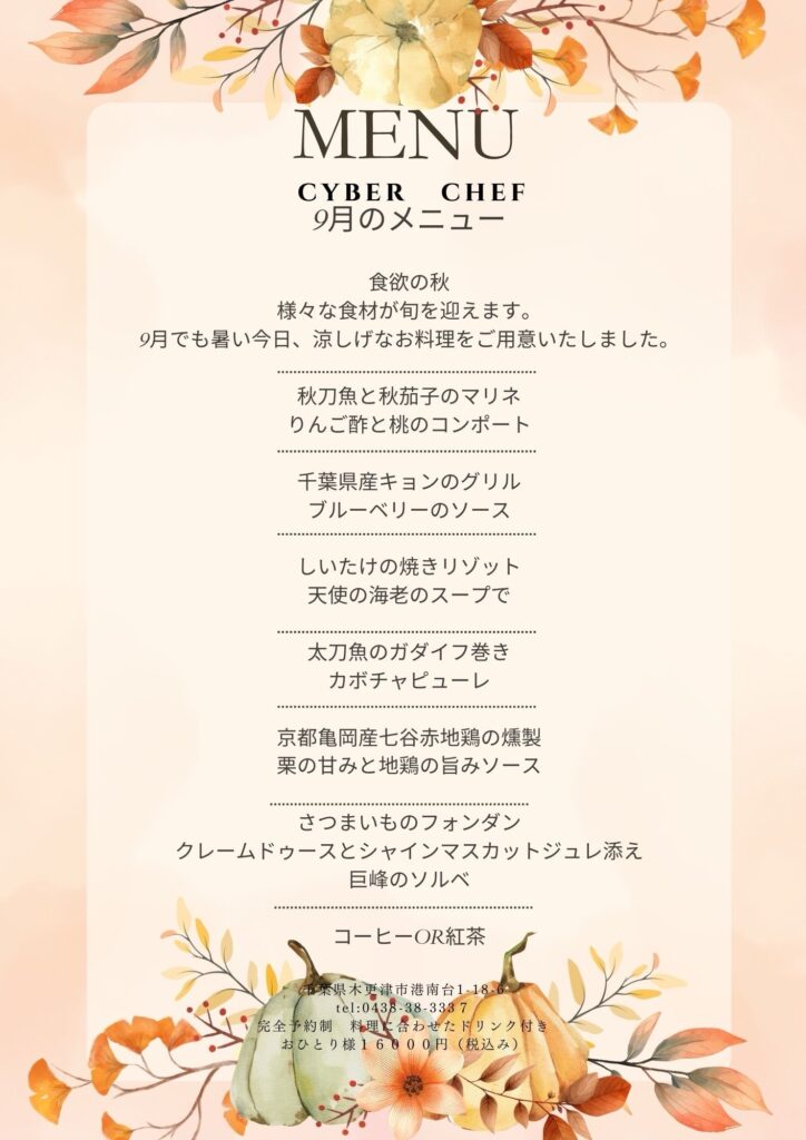9月のメニューより